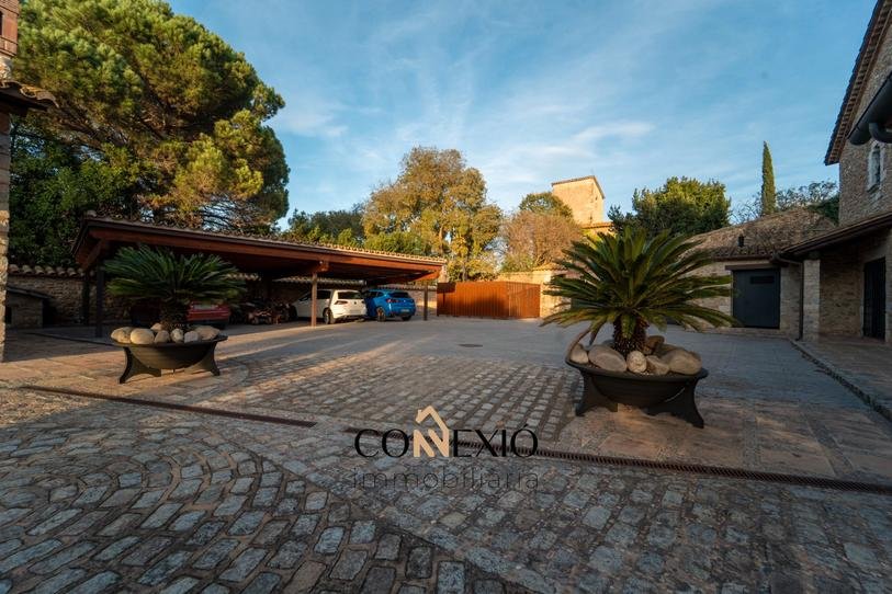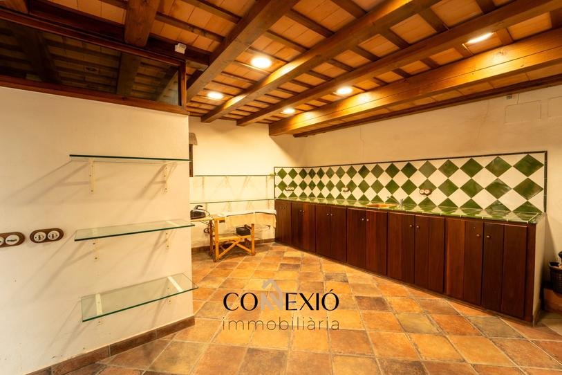 The property features six bedrooms, five of which have en-suite bathrooms, as well as an additional guest bathroom. The interiors preserve the authenticity of traditional Catalan architecture, with rustic elements such as exposed wooden beams and natural materials, tastefully combined with modern comforts.