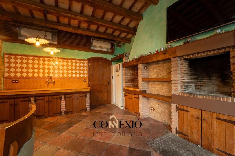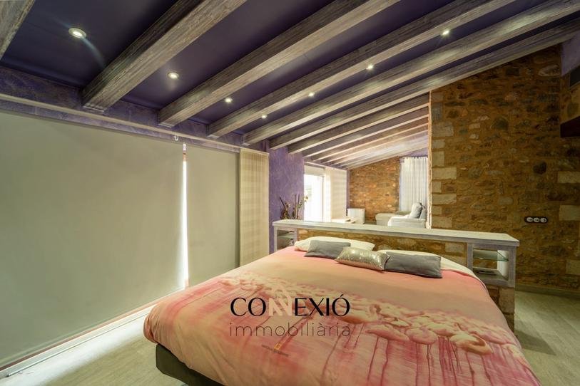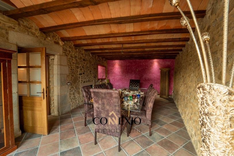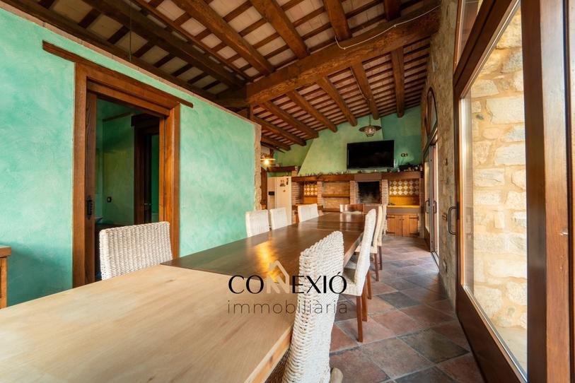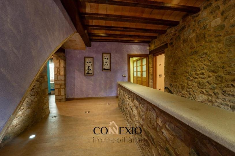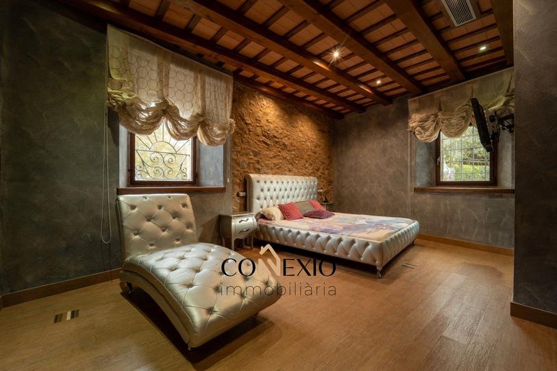 La propiedad cuenta con seis habitaciones, cinco de ellas con baño en suite, además de un baño adicional. Los interiores conservan el carácter de la arquitectura tradicional catalana, con elementos rústicos como vigas y materiales nobles, combinados de forma armoniosa con comodidades modernas.